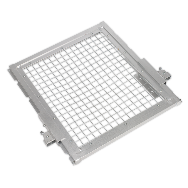Lightweight aluminium frame with tough steel mesh. Adjustable guard protects the user and/or passer by from being injured if workpiece is accidentally dislodged under load. Bolts onto either side of the table and features five height increments, allowing the workpiece to be placed onto table with no obstruction. One-way spring loaded locking clips then allow the guard to be pulled up quickly and snap straight into position for full protection.