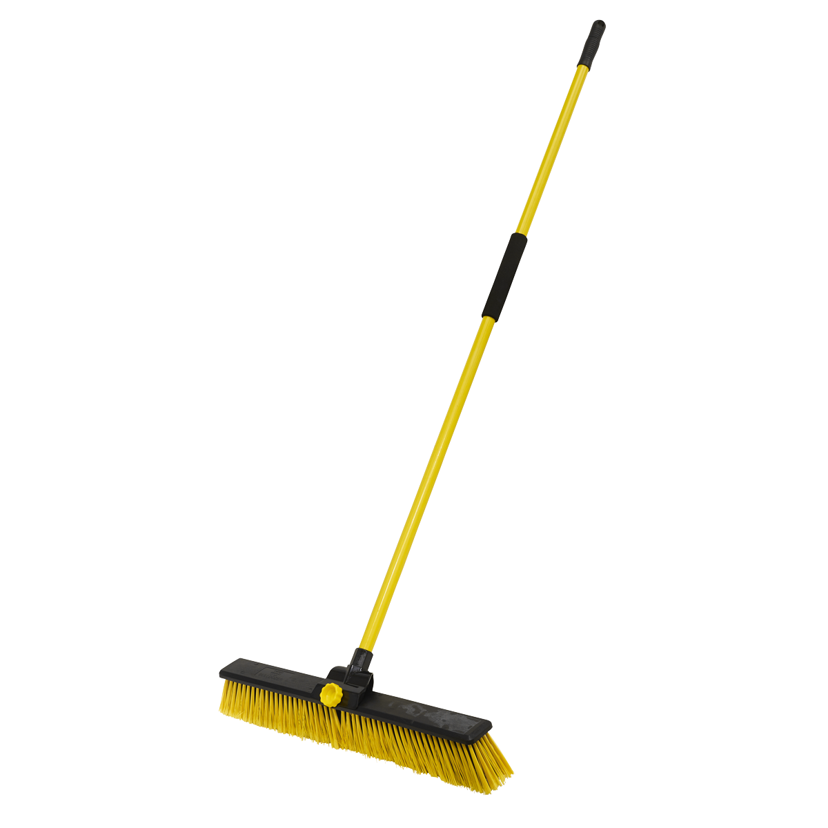 Hard-wearing, dual purpose, split-tip polypropylene and PVC fibres ideal for indoor and outdoor surfaces. Stiff inner fibres sweep concrete, asphalt and other rough surfaces. Soft outer fibres are ideal for sweeping fine dirt and dust. Features high quality steel handle with grip bracket to secure and prevent damage to handle and resin block. Fitted with handle storage clips for easy storage.