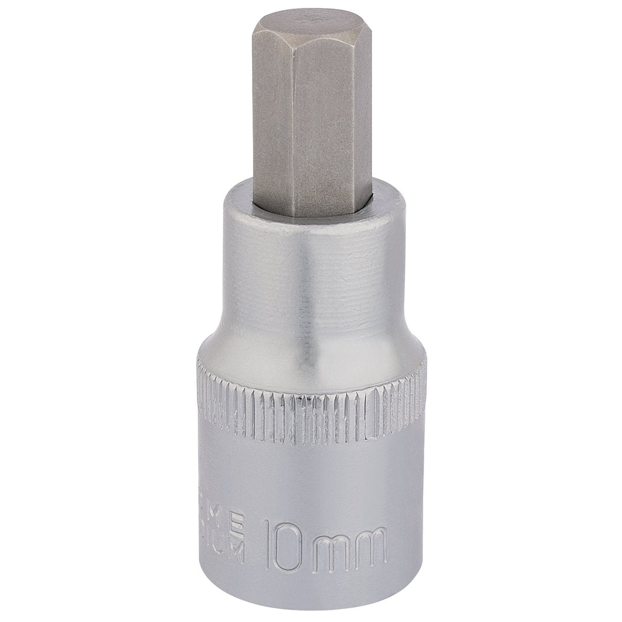 Expert Quality, socket fitted with a hexagonal bit, with an overall length of 55mm. All socket manufactured from hardened and tempered chrome vanadium steel with sand blasted bits of S2 silicon steel. Each socket has a knurled ring for extra grip.