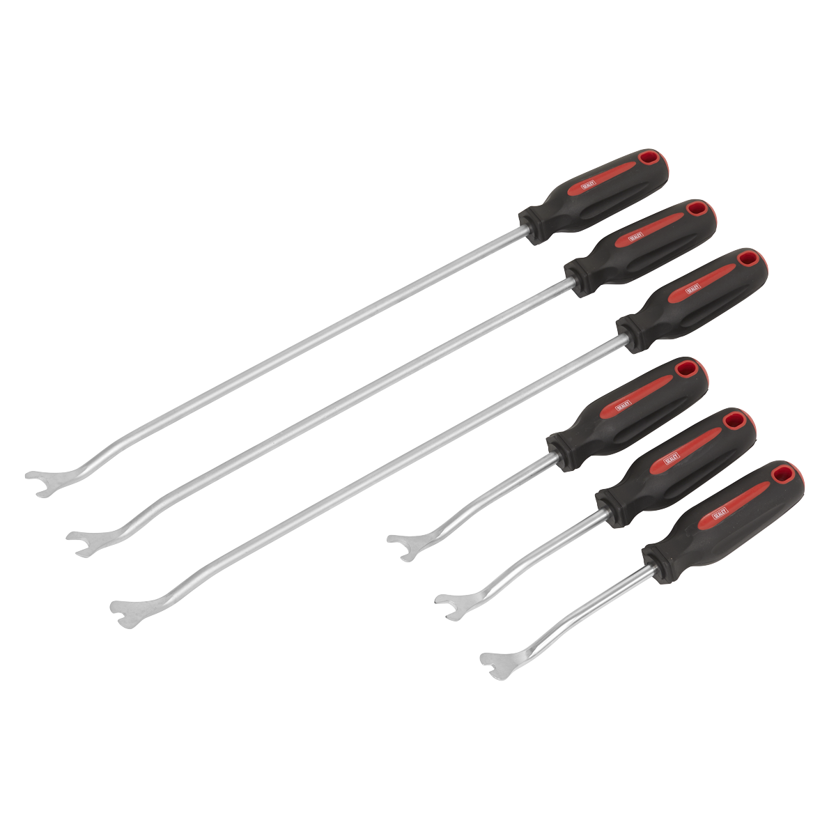 Designed for the removal of trim clips found on most vehicles. Comprises long and short reach steel shafts with clawed heads. Contoured and textured comfort grip handles.