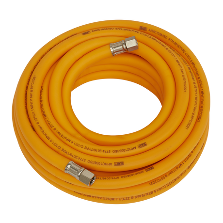 Air Hose 15m x Ø10mm Hybrid High-Visibility with 1/4"BSP Unions - AHHC1538