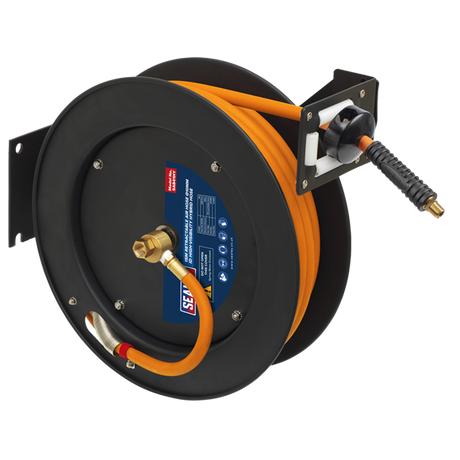 Sealey | 15m Retractable High-Visibility Hybrid Air Hose with Metal Reel 10mm ID - SA841HY