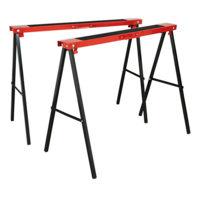 Manufactured from pressed steel, these trestles are ideal for supporting large workpieces when cutting and drilling. Trestle tops include an anti-slip and carry handle. Fully collapsible for easy storage and transportation.
