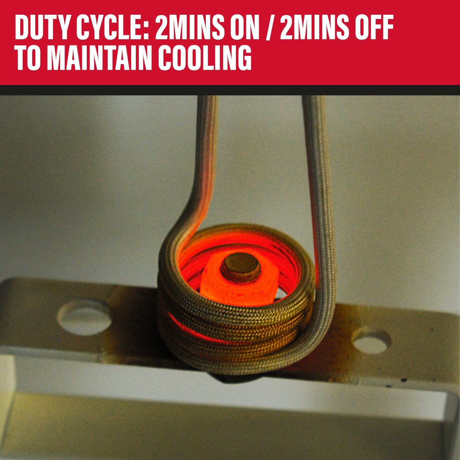 Easy to control and highly efficient, this induction heater kit safely operates with a recommended duty cycle of 2mins ON / 2mins OFF to maintain the cooling and integrity of the induction heating coils.
