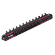 Durable anodised aluminium socket rail with lockable nylon clips. Triangular design allows storage for up to 16 sockets and 30 bits. Lock and unlock sockets with a simple side to side movement. Fixing holes enable cabinet or wall mounting. Suitable for retaining 1/4"Sq drive sockets and 1/4"Hex bits.
