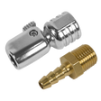 Compact design allows easy access to tyre valves. Quick-release push-button clip-on connector. Compatible with many brands of tyre inflators fitted with a 1/4"BSP male connector on the end of the hose, including Sealey Model No's SA39, SA371, SA372, SA374, SA375, SA399, SA37/93, SA37/95, SA400, SA9312, SA37/93B, SA37/96B, SA37/99.