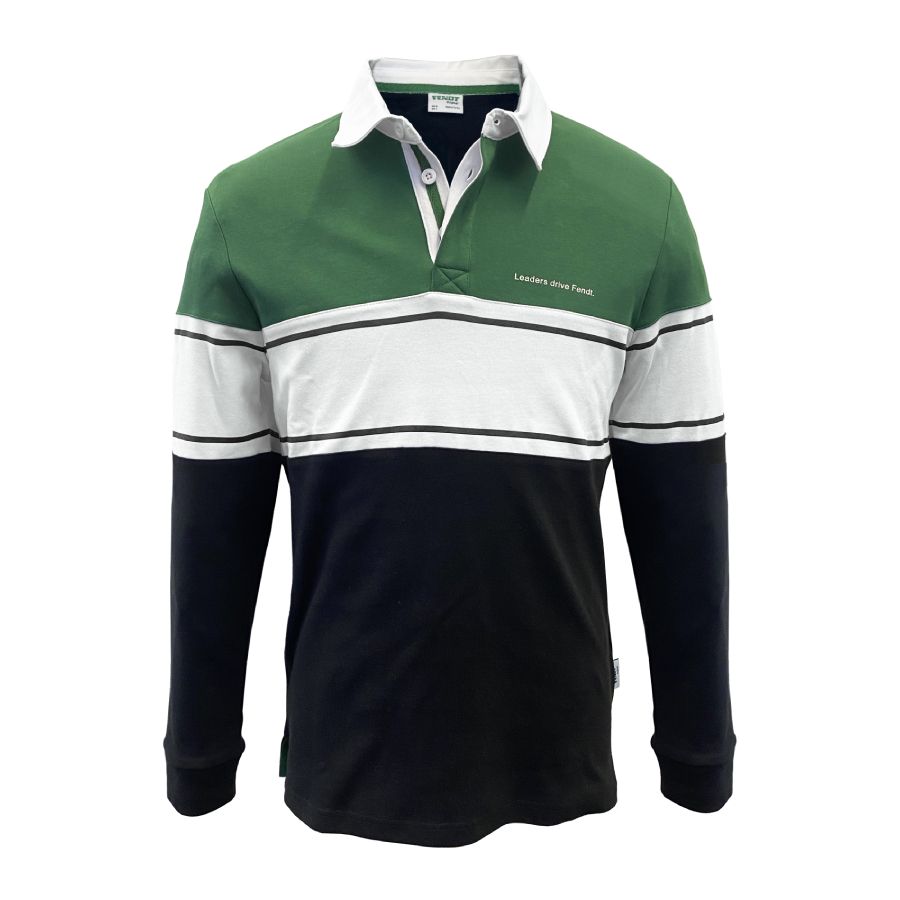 Fendt Long Sleeve Polo Shirt – "Leaders Drive Fendt" Collection | X9910232C - Small / Black / White / Green is backordered and will ship as soon as it is back in stock.