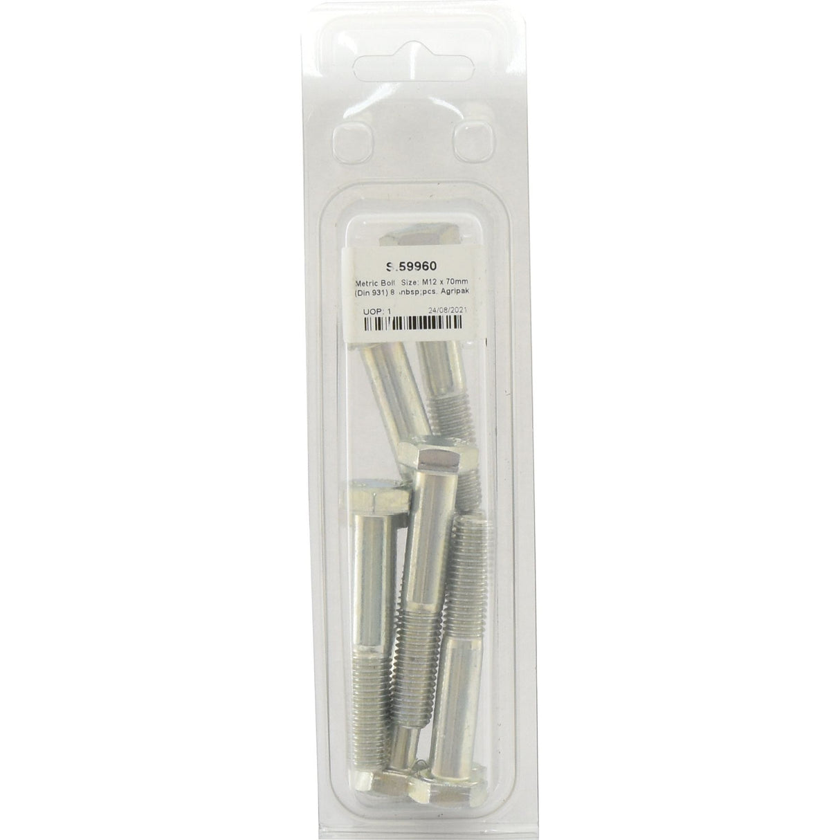 Metric Bolt, M12x70mm (DIN 931) 8 pcs. Agripak | Sparex Part No.S.59960 1.0 kg