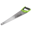 ABS and TPR anti-slip soft grip handle with finger rest for comfort and control. 1mm 65Mn High grade carbon steel blade. Hardened and tempered double ground teeth for fast and efficient cutting. Lacquered coating for reduced friction and corrosion resistance. 45° and 90° angle guides integrated into handle with useful 490mm ruler measurement along top edge of blade. General-purpose 7tpi blade suitable for timber, hardwood, MDF, chipboard and plastics.