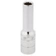 Expert Quality, 12 point deep socket manufactured from chrome vanadium steel that's hardened and tempered with a polished finish. Each socket has a knurled ring for extra grip.
