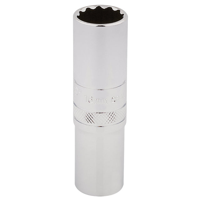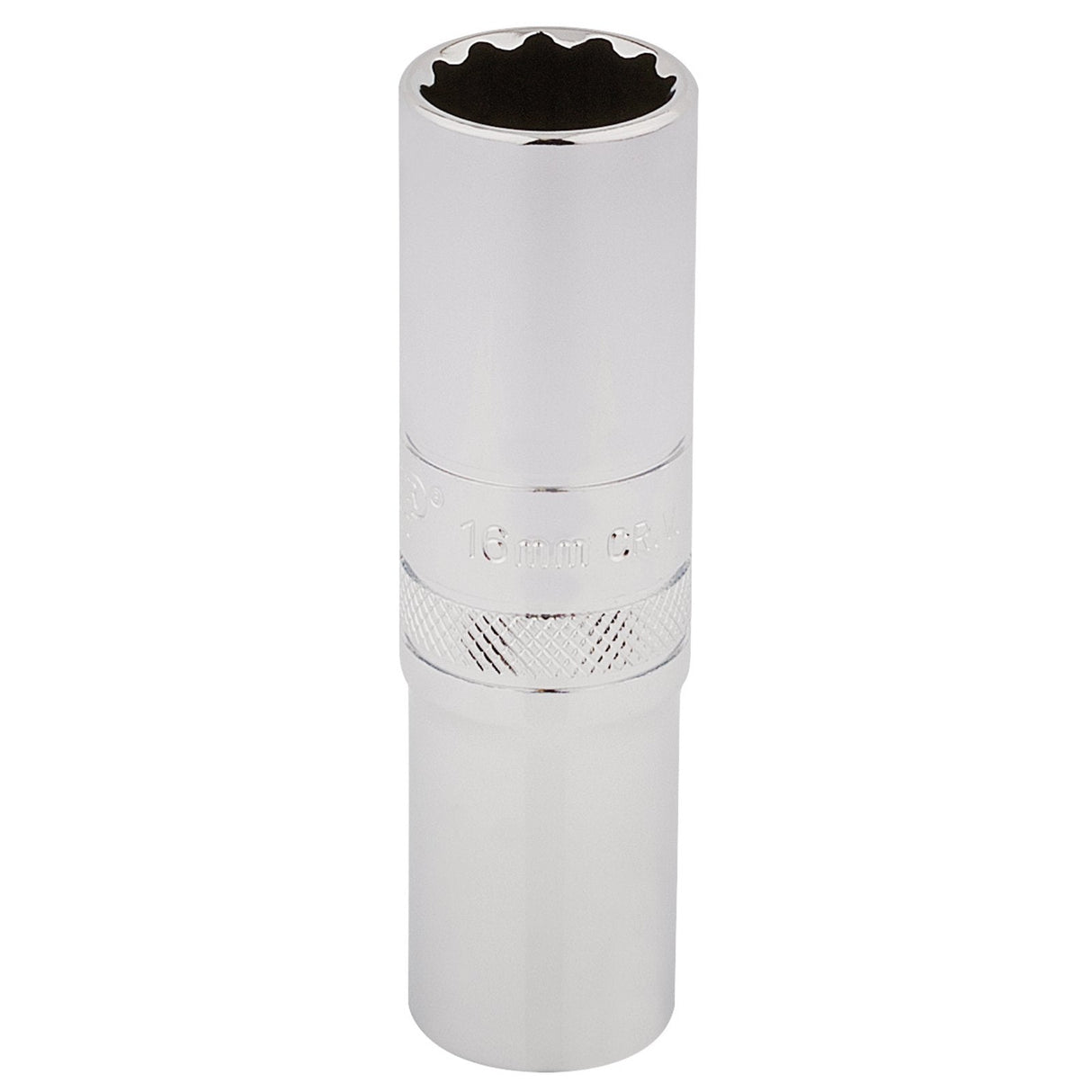 Expert Quality, 12 point deep socket manufactured from chrome vanadium steel that's hardened and tempered with a polished finish. Each socket has a knurled ring for extra grip.