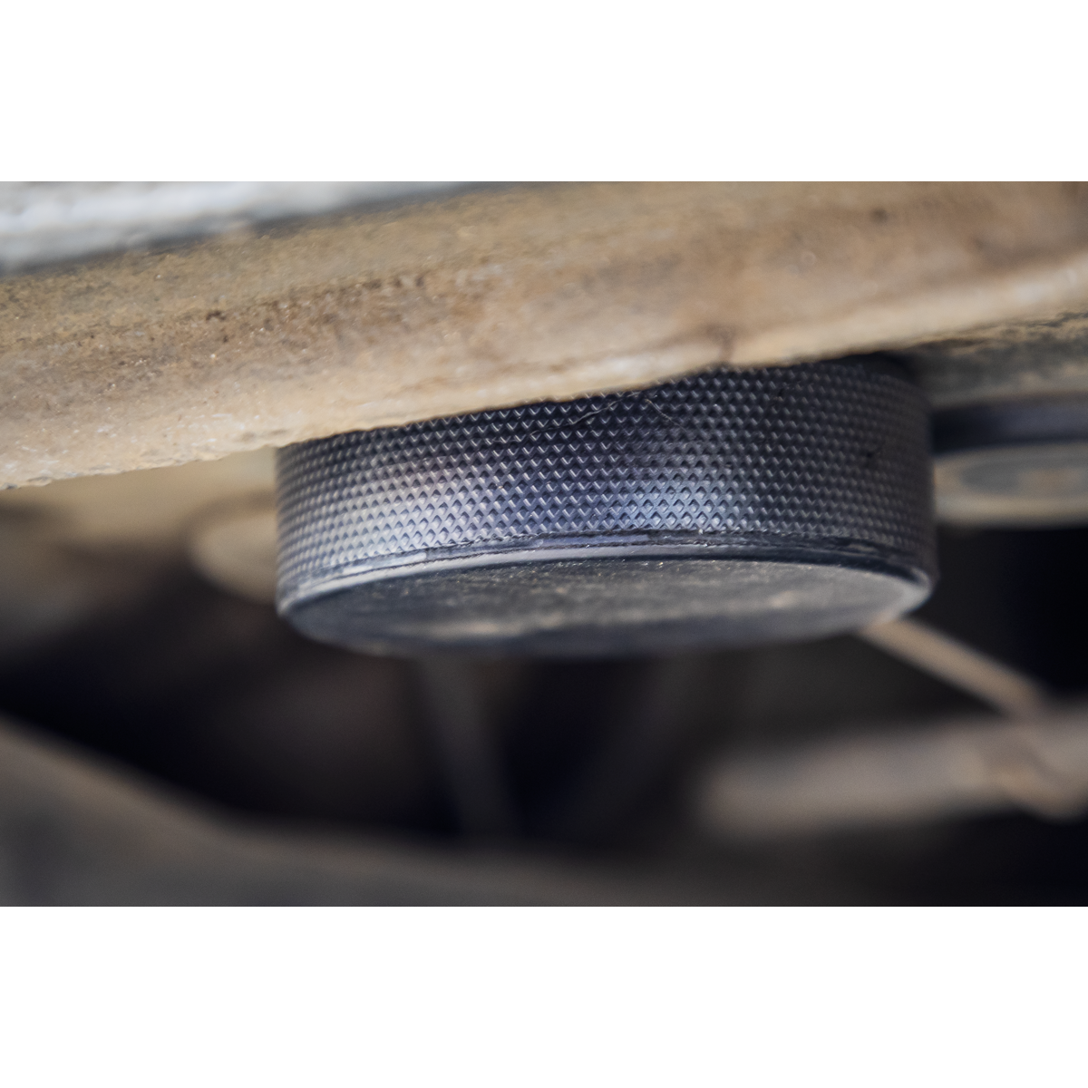 Designed for the jacking points to protect and prevent damage to side skirts and battery. Made from high quality rubber, providing a sturdy and durable point of contact. Features a rubber O-ring on the spigot, creating a secure fit to the vehicle. Supplied in a storage case. Suitable for Tesla models S/X/Y/3.