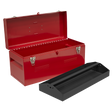 • Heavy-duty steel toolbox with integral tote tray and composite carry handle.