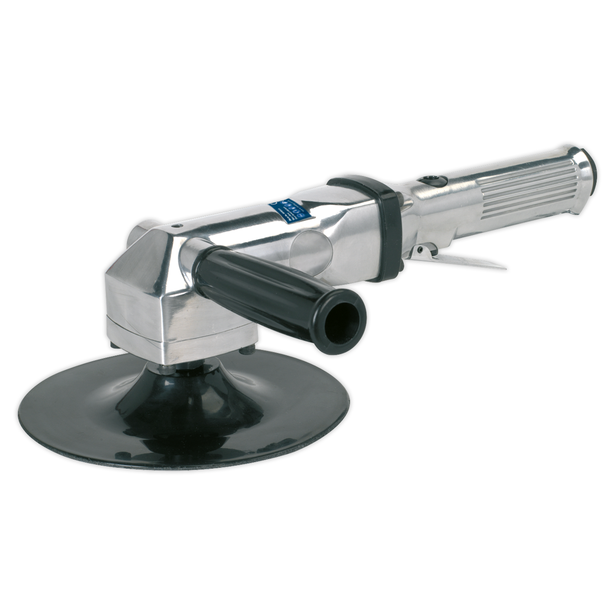 Polished and well balanced aluminium body with two side handle mounting positions. Precision made bevel gears give quiet and smooth operation at speeds suitable for sanding. Trigger operated throttle control. Supplied with Ø180mm self-adhesive backing pad.