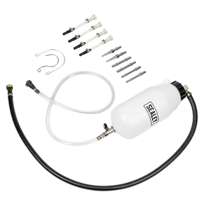 Large 1.5L tank, that gives enough runtime to perform diagnostics. Fuel delivery and return pipe that connects to the low-pressure side of the fuel system. Making it ideal for bypassing the fuel tank when fuel contamination is suspected. Supplied with 10 fuel line connectors, ensuring the VS666 is compatible with most petrol and diesel passenger and light commercial vehicles. It can also be used for motorcycle maintenance eliminating the need to balance the fuel tank in an awkward positions.