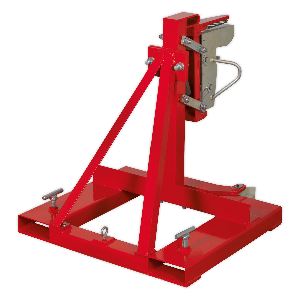 Manufactured from heavy-duty steel. Fitted with automatic grip lock to ensure maximum grip is maintained over rough terrain. Features suspension system to ensure safety. Suitable for use with 205L steel drums. Unit attaches to most forklifts and is secured using two heavy-duty fixing bolts.