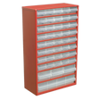 Professional quality steel frame cabinet for use in the workshop. Supplied with 44 tough polypropylene drawers which can be subdivided into smaller compartments with dividers (not included). Can be wall mounted or used freestanding.