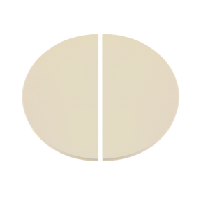 Using the ceramic half-moon deflectors in conjunction with the grill stand and adjusters, already included with the DG159 grill, you can cook ribs, whole roasts and chicken, vegetables, steaks, pizzas, and more all at once. The deflectors assist with controlling heat levels so you can cook low & slow, do the perfect roast & grill, or turn up the heat and be fast & furious! They also increase the cooking area of the BBQ if used in various ways. Use with the DG159 56cm (22”) Kamado Grill or it is suitable for all kamado models of a similar construction and size. Set of 2 halves, put them together to form a pizza stone for another meal type. Constructed from food grade, premium, long lasting ceramic materials which is easy to clean. Dimensions: 38cm (15").