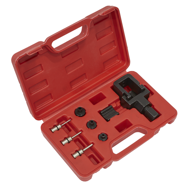 • Comprehensive set designed to shorten and lengthen motorcycle chains by removing or replacing links.