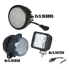 The set includes 2 x S.163885 lights, 8 x S.167759 lights, and 4 x S.151838 lights, each chosen for their high lumen output, durability, and compatibility with Fendt 500 and 700 Series tractors. Engineered with cutting-edge LED technology, these lights ensure maximum beam clarity and coverage for demanding agricultural environments.