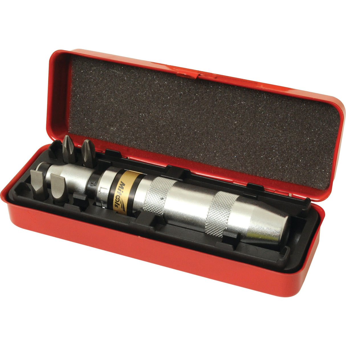 Introducing the Impact Screwdriver Set by Mitools, a comprehensive 6-piece toolkit designed for efficiency and durability. This set features a robust 1/2'' Drive Size Impact Screwdriver and a 1/2'' Drive Bit Holder with a 5/16'' connection, making it an essential addition to any toolbox.