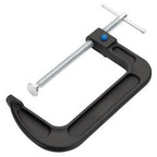 These durable G-Clamp have a malleable cast iron frame and a powder coated finish for protection. One-handed operation is made easier, thanks to the quick release button. The swivel shoe aids clamping on uneven surfaces. There is a silver plated square thread screw, tommy bar handle and swivel shoe.