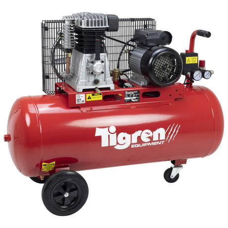 TIGREN 100L 3hp Belt-Driven Compressor | Twin Cylinder | IP-04396