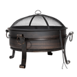 Deluxe 2-in-1 fire pit. Supplied with steel lid allowing this fire pit to be converted into a coffee table. Manufactured from durable steel (1mm) with an antique bronze finish. Includes mesh safety screen to prevent embers and sparks flying. Suitable for use with untreated wood and logs. Supplied with fire poker. Some simple assembly required.