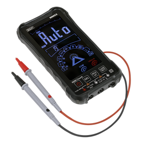 Intelligent multimeter automatically detects and selects the required test function, AC/DC, voltage/current, resistance and continuity. Features temperature measurement capability, data-hold and auto-power-off function. Non-contact voltage detection (NCVD) enables one-handed use. 6000 Count high precision measurements. Live test feature can test for live feeds with a single probe. Large LCD touchscreen and LED worklight. Rechargeable, supplied with Type-C USB charging cable. Includes probes and thermocouple probe. High-impact case. Supplied in a storage case. Conforms to EN 61010-2 CATIII 600V safety requirements for electrical equipment for measurement, control and laboratory use.