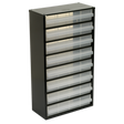 • Includes eight polypropylene drawers, each divided into four compartments.