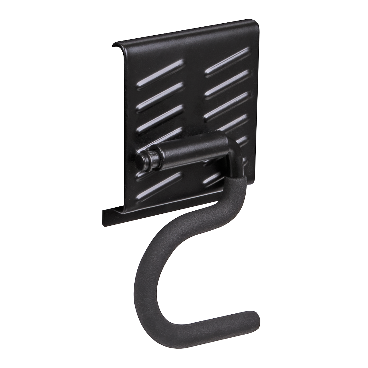 Powder coated steel single S prong storage hook. Coated with PVC to avoid damage to tools and equipment. Designed to be used in conjunction with Wall Mountable Storage Rail Model No. APH01 for quick and easy installation and repositioning. Ideal for holding long handle tools and brooms. Overall maximum load of 30kg. Dimensions (W x D x H) 80 x 30 x 150mm.