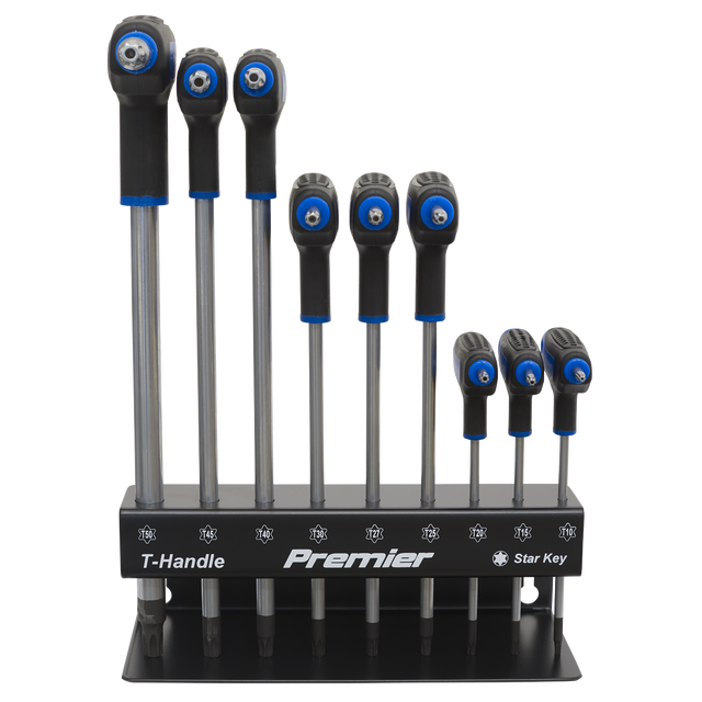 Manufactured from heat treated and hardened S2 steel with a fully polished satin finish. Keys range in length from 100 to 200mm. Tough, composite, comfort grip handle allows extra torque to be applied to the fixing. Each handle incorporates a long TRX-Star* and short Security TRX-Star* element (T10-T50). Includes metal stand suitable for wall mounting.