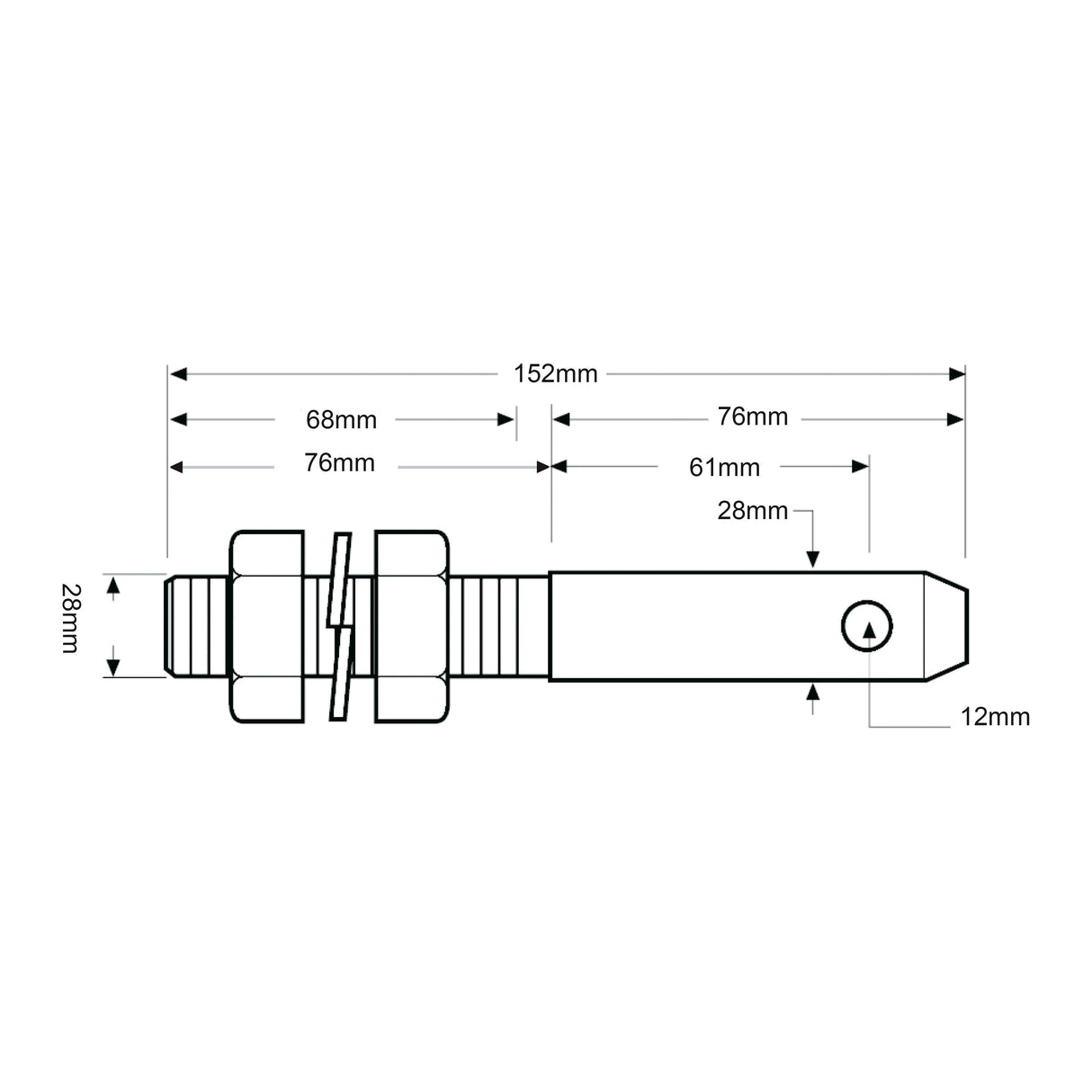 Enhance your agricultural equipment with the Sparex Lower Link Implement Pin, designed for durability and precision. This implement pin features a diameter of 28mm and an overall length of 152mm, making it an essential component for various applications. The pin is equipped with a 1 1/8'' UNF thread size and a thread length of 76mm, ensuring a secure fit for your machinery. Additionally, the hole diameter measures 12mm, providing versatility in attachment options.