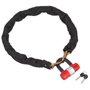 A reliable, cut-resistant chain, designed for the ultimate security of your motorcycle. Finished with a protective cover to prevent marking and scratching of paintwork. Suitable for protecting lawnmowers, sports equipment, pressure washers, toolboxes and scooters. Supplied with a high security padlock and key set.