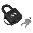 • WEATHERPROOF - Composite coated laminated steel body and hardened steel shackle and water tight lock cover.