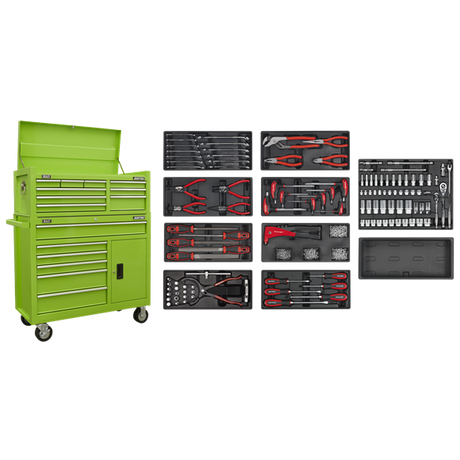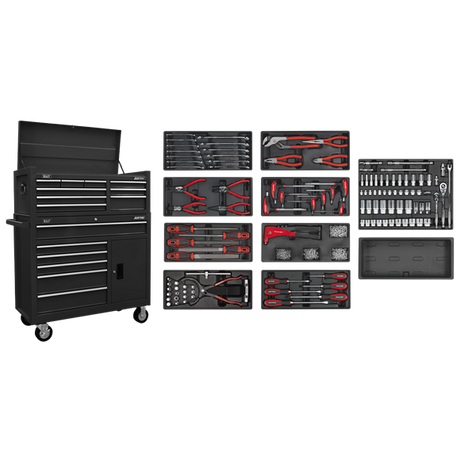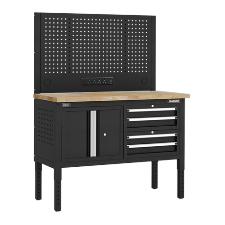 Superline PRO® Modular Workbench with 4 Drawers & Cupboard Wooden Worktop 1265mm - SE-APMWB50COMBO1W