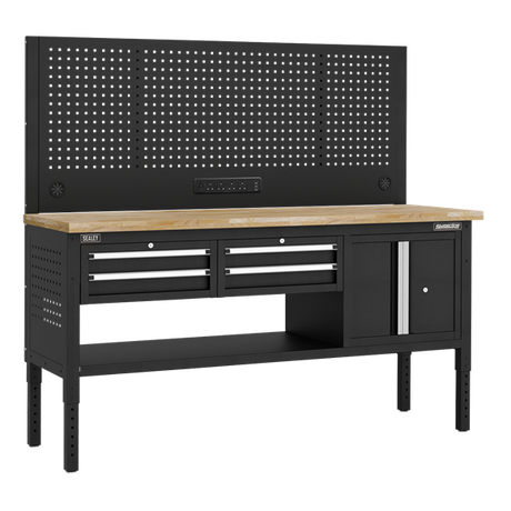Superline PRO® Modular Workbench with 4 Drawers & Cupboard Wooden Worktop 1830mm - SE-APMWB72COMBO1W