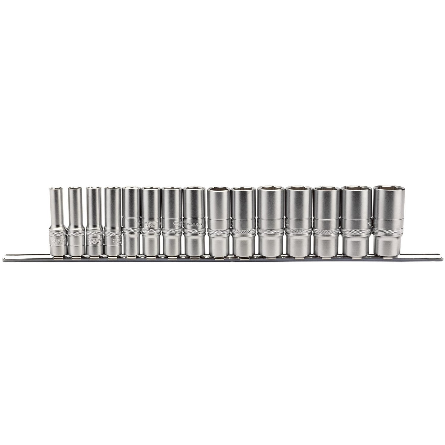 Draper Metric Deep Socket Set On A Metal Rail, 3/8" Sq. Dr. (15 Piece) - D15MD/SR 1 g