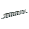 Chrome Vanadium steel 12-point sockets, hardened and tempered for added strength. Fully polished chrome finish for corrosion resistance. WallDrive® configuration giving an additional 30% more torque handling power than traditional sockets. Knurled ring for extra grip with oily fingers. Supplied with socket rail.