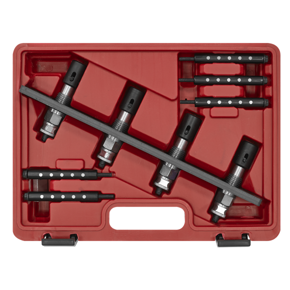 Designed for easy removal and installation of plastic-bodied petrol injectors, found on BMW and MINI engines. Reduces the chance of damage to the injectors. Applications: BMW and Mini engine codes B36, B38, B48, B58. Supplied in storage case. Equivalent OEM numbers 2 358 417 and 2 358 022.