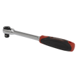 Chrome Vanadium steel ratchet wrench. Hardened and tempered with a fully polished micro satin finish. Compact head design and ultra-smooth 72-tooth ratchet action allowing ratcheting in increments of 5° for ease of use in restricted areas. Textured soft grip handle for comfort and control. Features integrated socket spinner, flip reverse and quick release mechanism.