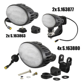This comprehensive kit includes 2 x S.163863 LED lights for wide-area illumination, 4 x S.163880 lights for mid-range coverage, and 2 x S.163877 powerful LEDs designed for long-range field visibility. Each light is built to withstand rugged agricultural use, with energy-saving performance and easy installation on New Holland T6 and T7 Series tractors.