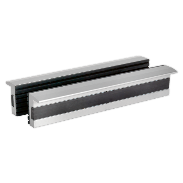 Suitable for protecting soft materials that require clamping in a vice. Aluminium body with soft rubber front helps prevent markings or damage to the workpiece. Fitted with heavy-duty magnetic strip on the back to adhere to the vice jaws preventing movement when clamping.