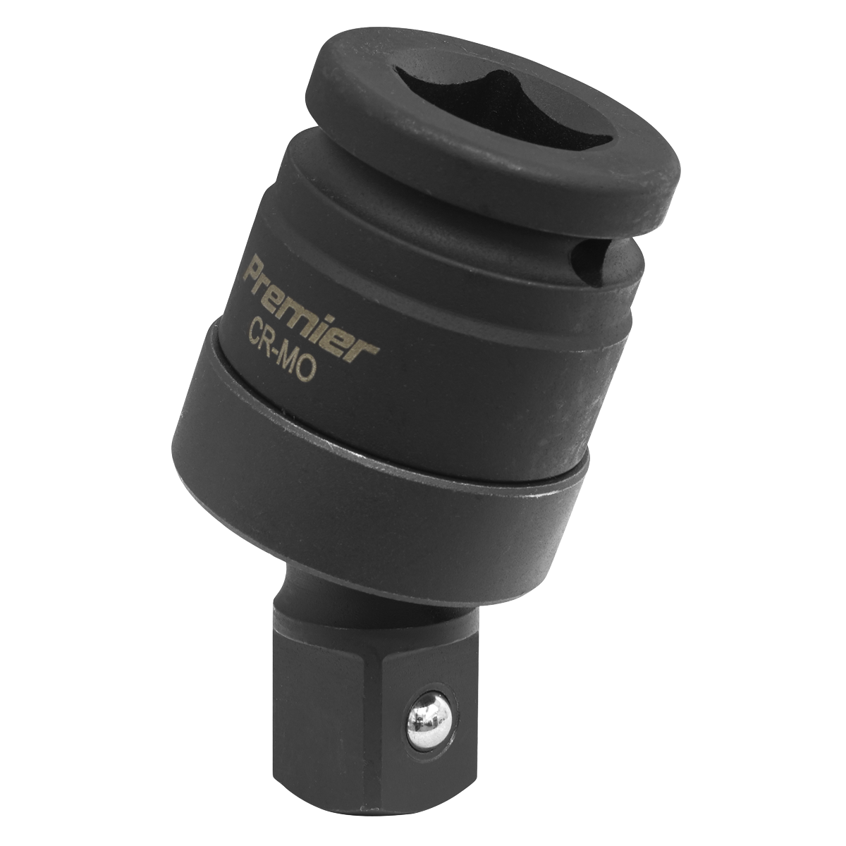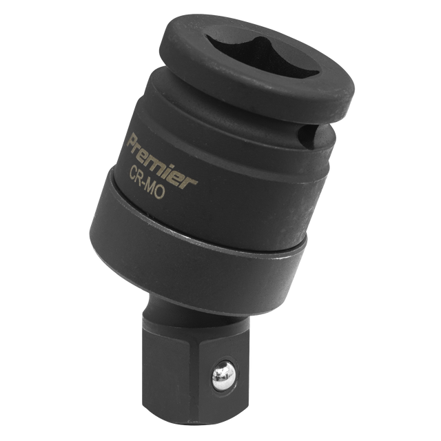 Drop-forged Chrome Molybdenum steel universal joint. Suitable for use on all types of air impact tool. Phosphate finish for added corrosion resistance. Spring-ball socket retainer and drilled head to accept retaining pin.