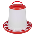 Twist lock base fitting secures the base of the feeder. Features removable lid to protect the contents and built-in hanging handle. Anti-scrape ring prevents feed being spilled and built-in fins evenly distribute the feed. Manufactured from high quality plastic with a robust design. Suitable for use with all types of poultry.