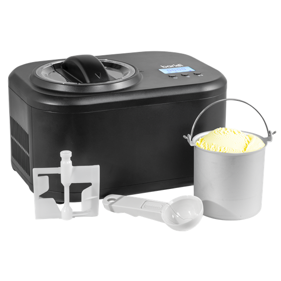 • Digital controls to set up preparation time. LCD display indicates time remaining and inside temperature. Thanks to its compact dimensions of 350 x 250 x 220mm, this ice cream machine comfortably fits into even the smallest of kitchens.