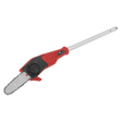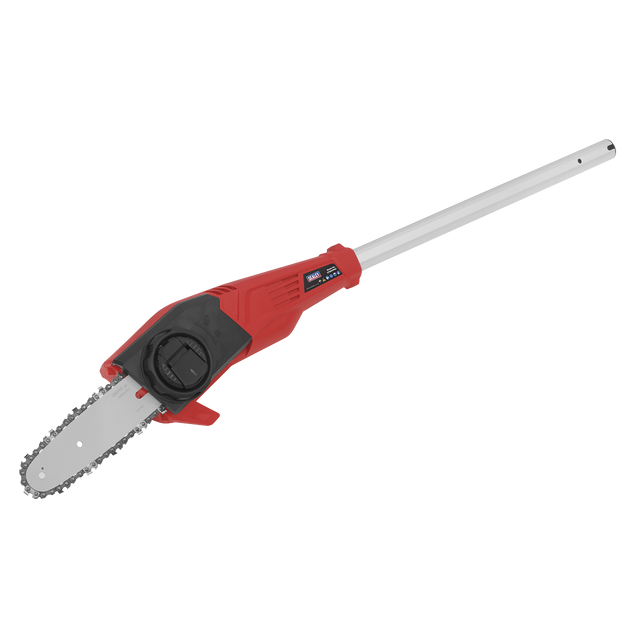 Cordless telescopic chainsaw head - body only. Ideal for precision cutting whilst reaching hanging branches and tall hedges. Must be used in conjunction with Telescopic Pole Model No. CP20VTP (sold separately). High quality cutting performance with an Oregon chain and bar with easy no tools needed to change. Continuous cutting speed of 8m/s. 90° Pivoting head is ideal for those hard-to-reach areas. Automatic chain lubrication with 100ml capacity oil tank. Requires compatible 20V battery and mains charger, sold separately.