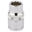 Expert Quality, 12 point socket manufactured from chrome vanadium steel that's hardened and tempered with a polished finish. Each socket has a knurled ring for extra grip.