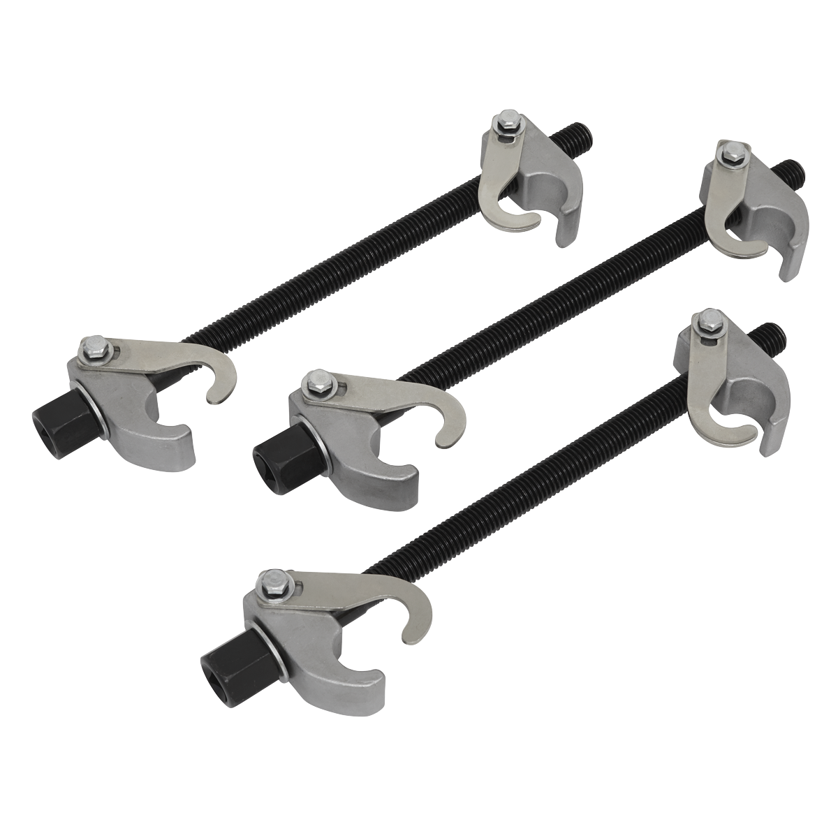 - Equipped with cast jaws and safety hooks, providing enhanced safety by preventing accidental release of springs under compression.