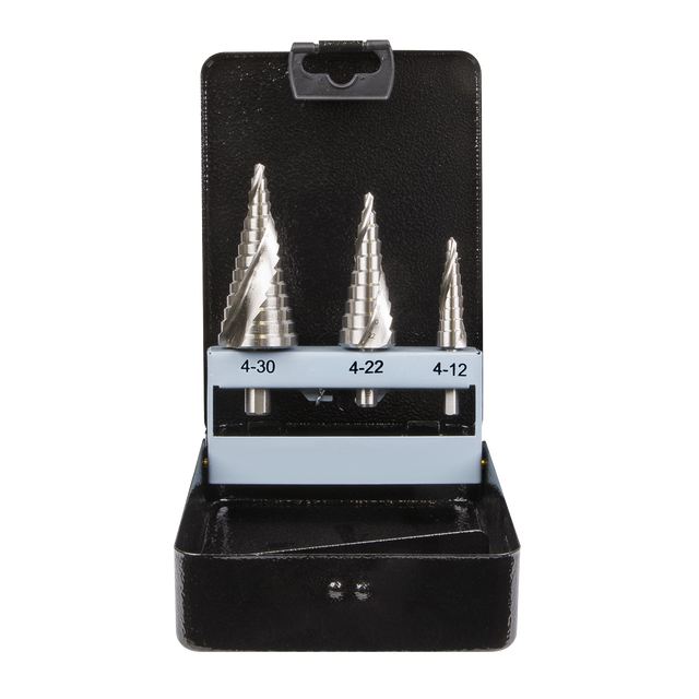 - Versatile size range: Includes three step drill bits with diameters of Ø4-12mm, Ø4-22mm, and Ø4-30mm for various applications.